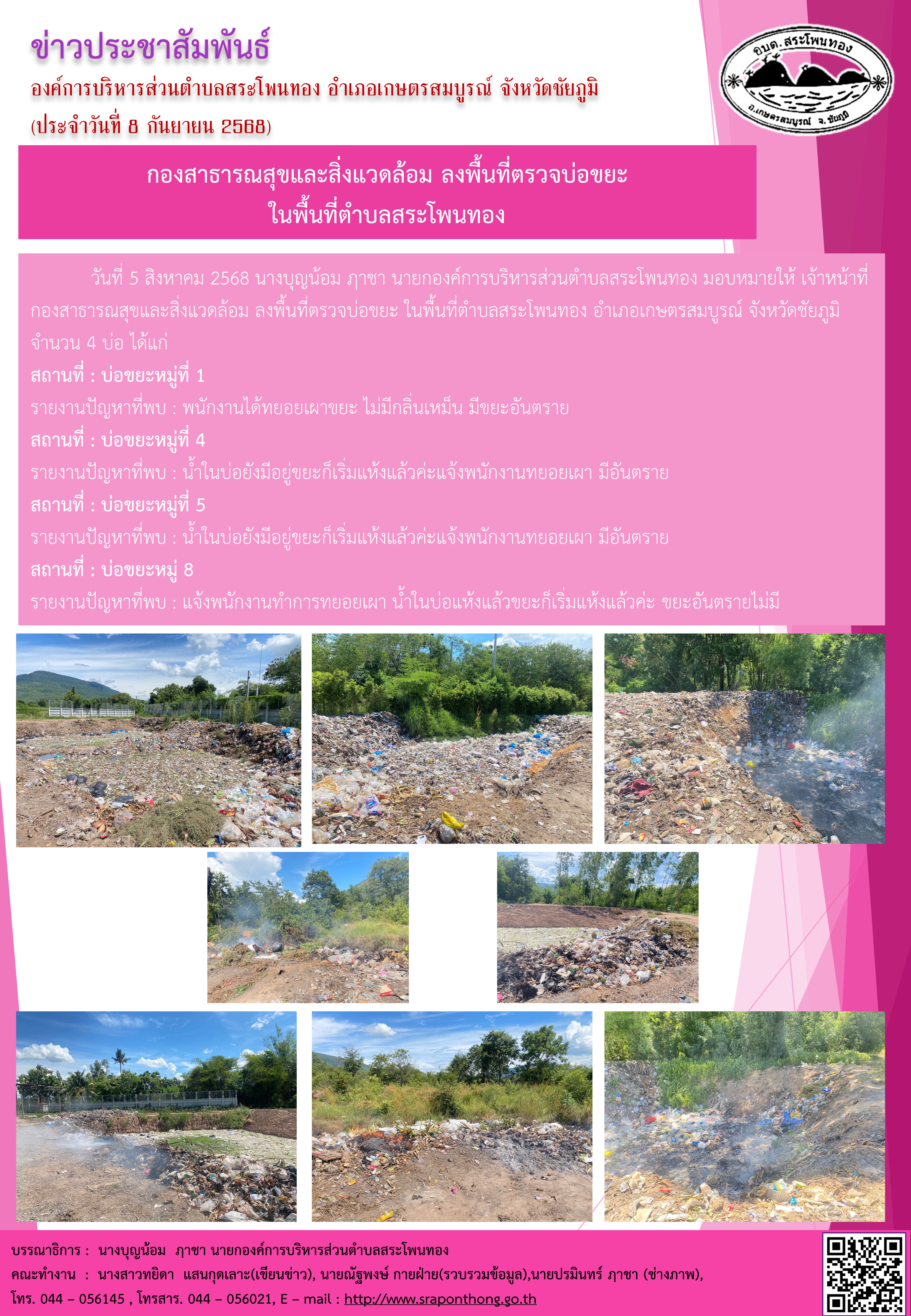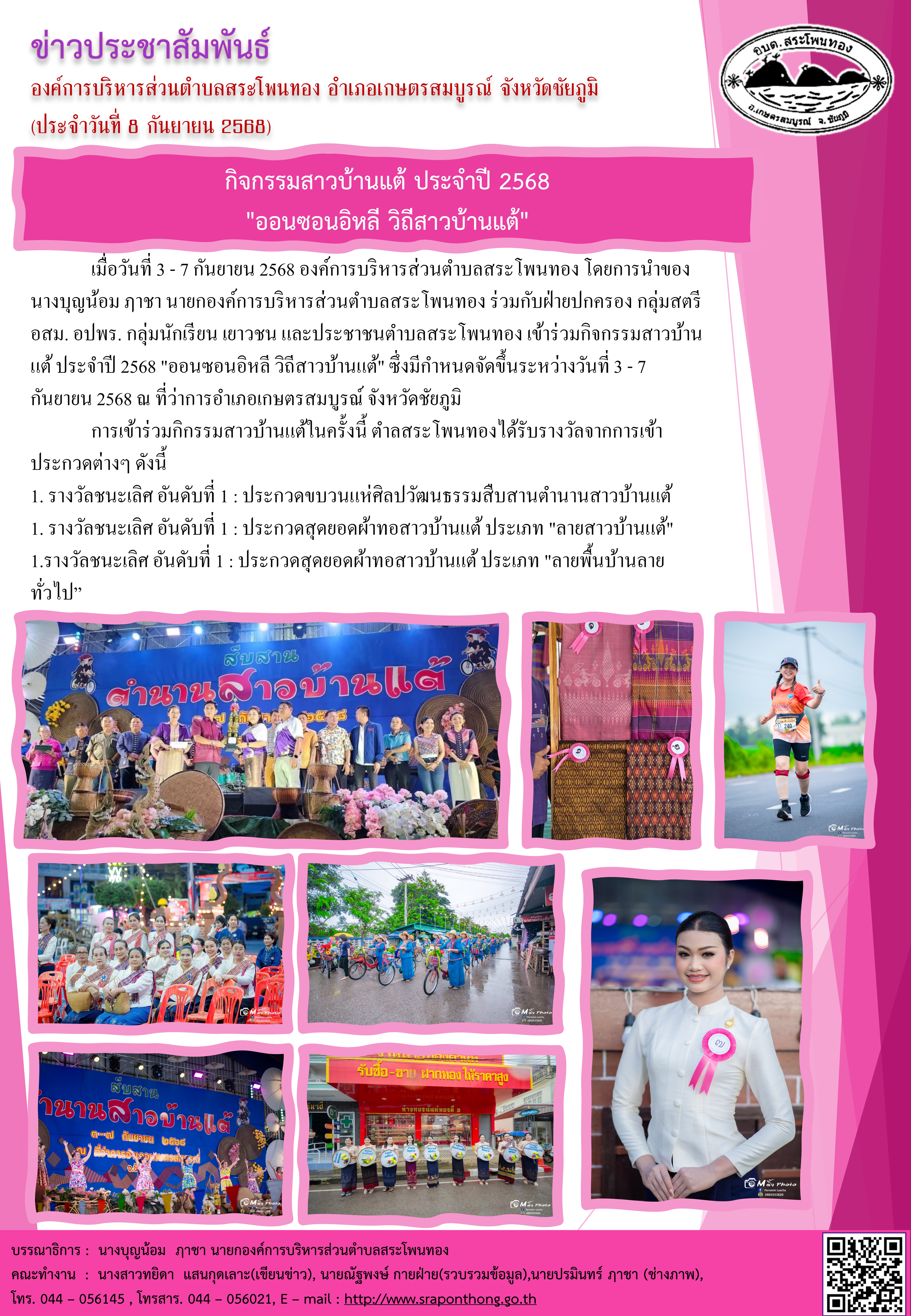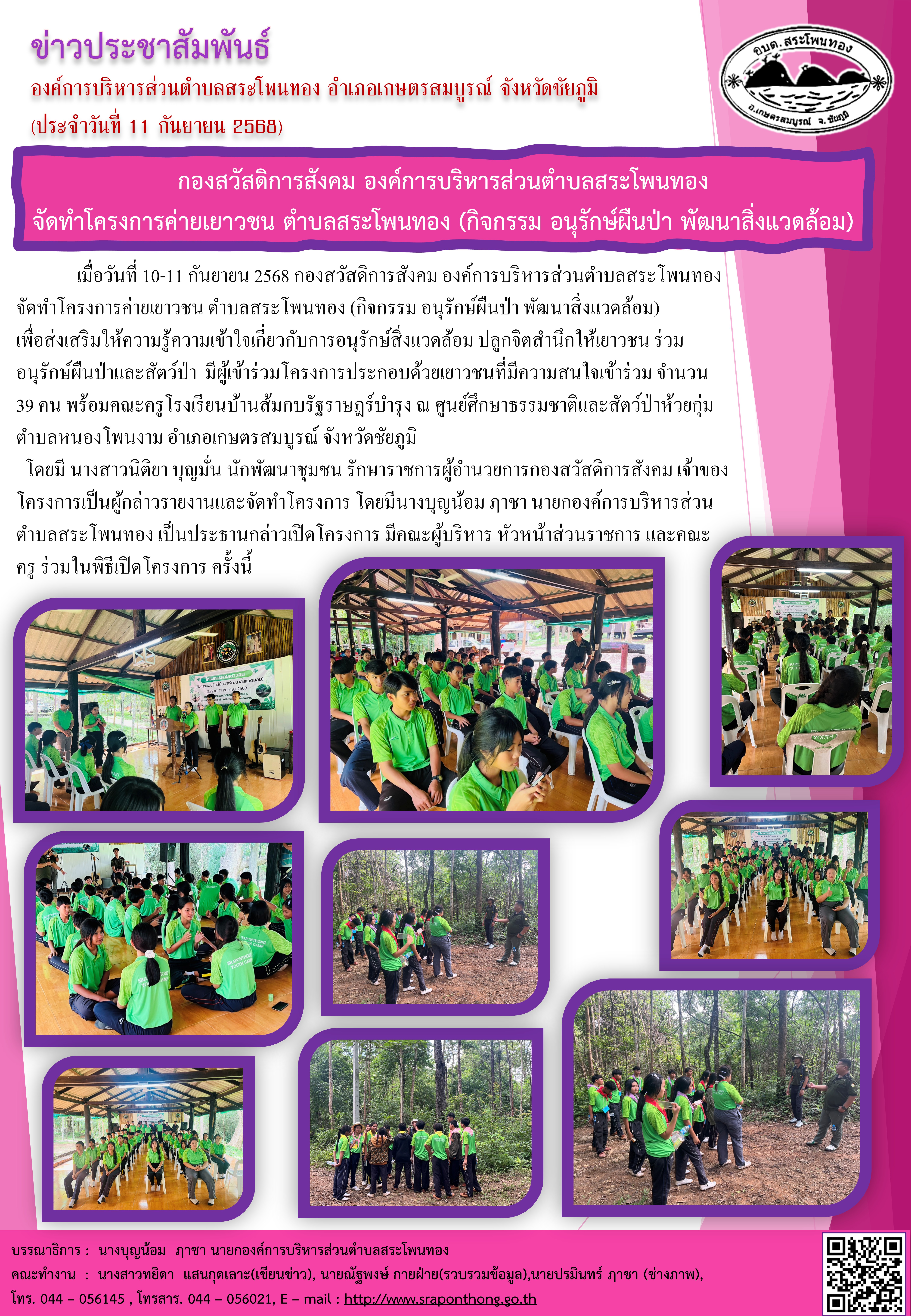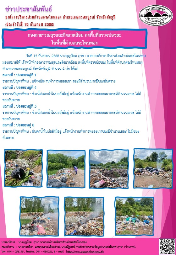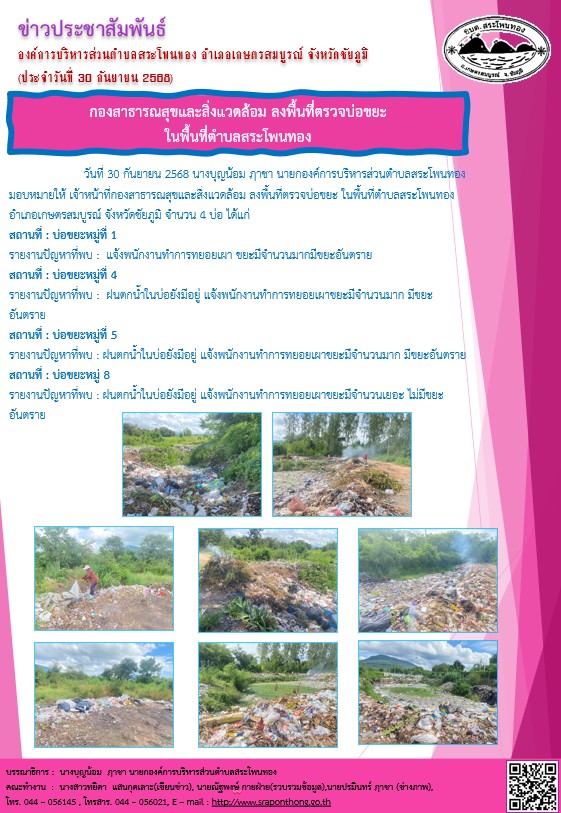 องค์การบริหารส่วนตำบลสระโพนทอง อำเภอเกษตรสมบูรณ์ จังหวัดชัยภูมิ: www.sraponthong.go.th