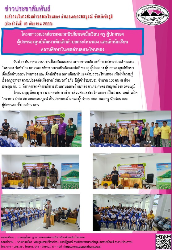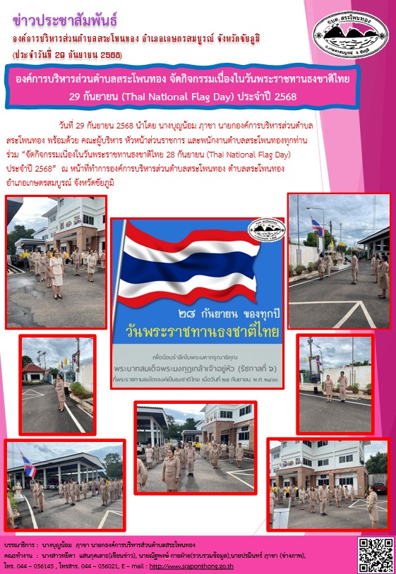 องค์การบริหารส่วนตำบลสระโพนทอง จัดกิจกรรมเนื่องในวันพระราชทานธงชาติไทย 29 กันยายน (Thai National Flag Day) ประจำปี 2568