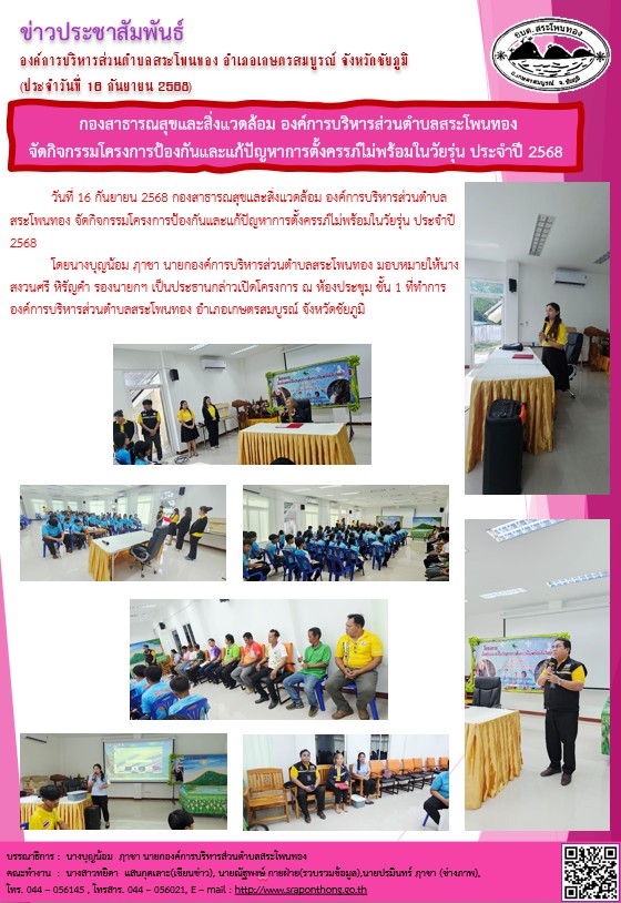 กองสาธารณสุขและสิ่งแวดล้อม จัดกิจกรรมโครงการป้องกันและแก้ปัญหาการตั้งครรภ์ไม่พร้อมในวัยรุ่น ประจำปี 2568