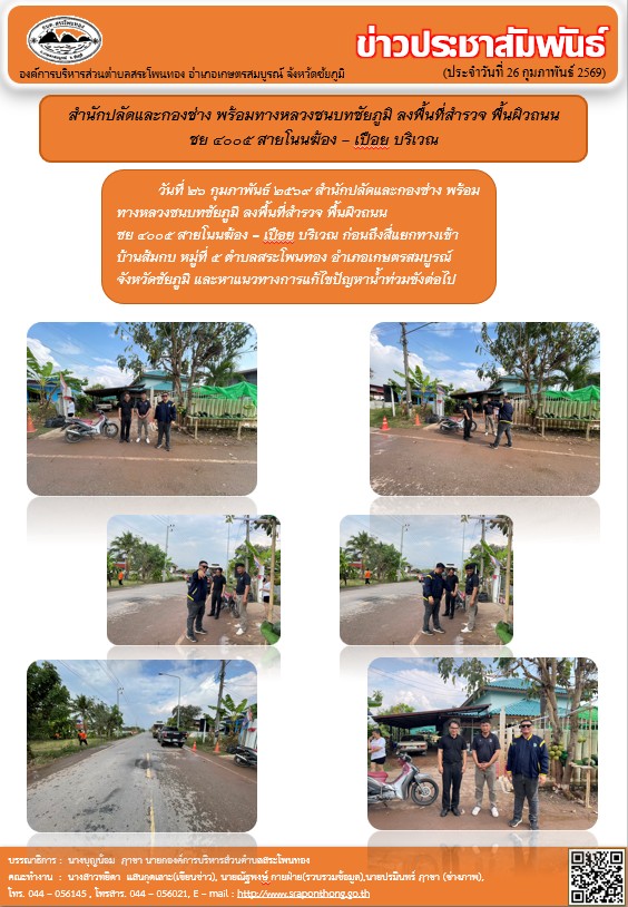 องค์การบริหารส่วนตำบลสระโพนทอง อำเภอเกษตรสมบูรณ์ จังหวัดชัยภูมิ: www.sraponthong.go.th