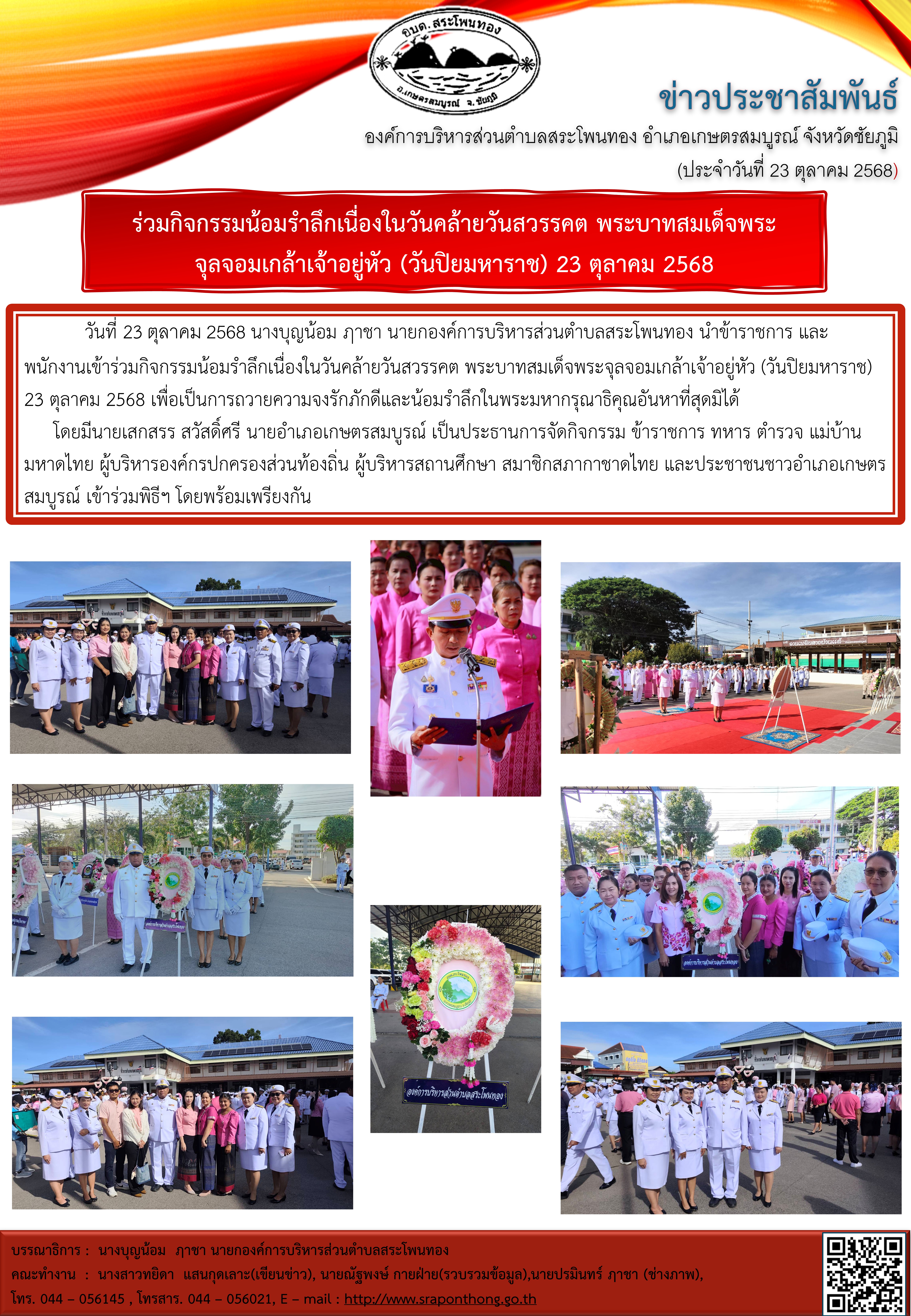 องค์การบริหารส่วนตำบลสระโพนทอง จัดกิจกรรมเนื่องในวันพระราชทานธงชาติไทย 29 กันยายน (Thai National Flag Day) ประจำปี 2568