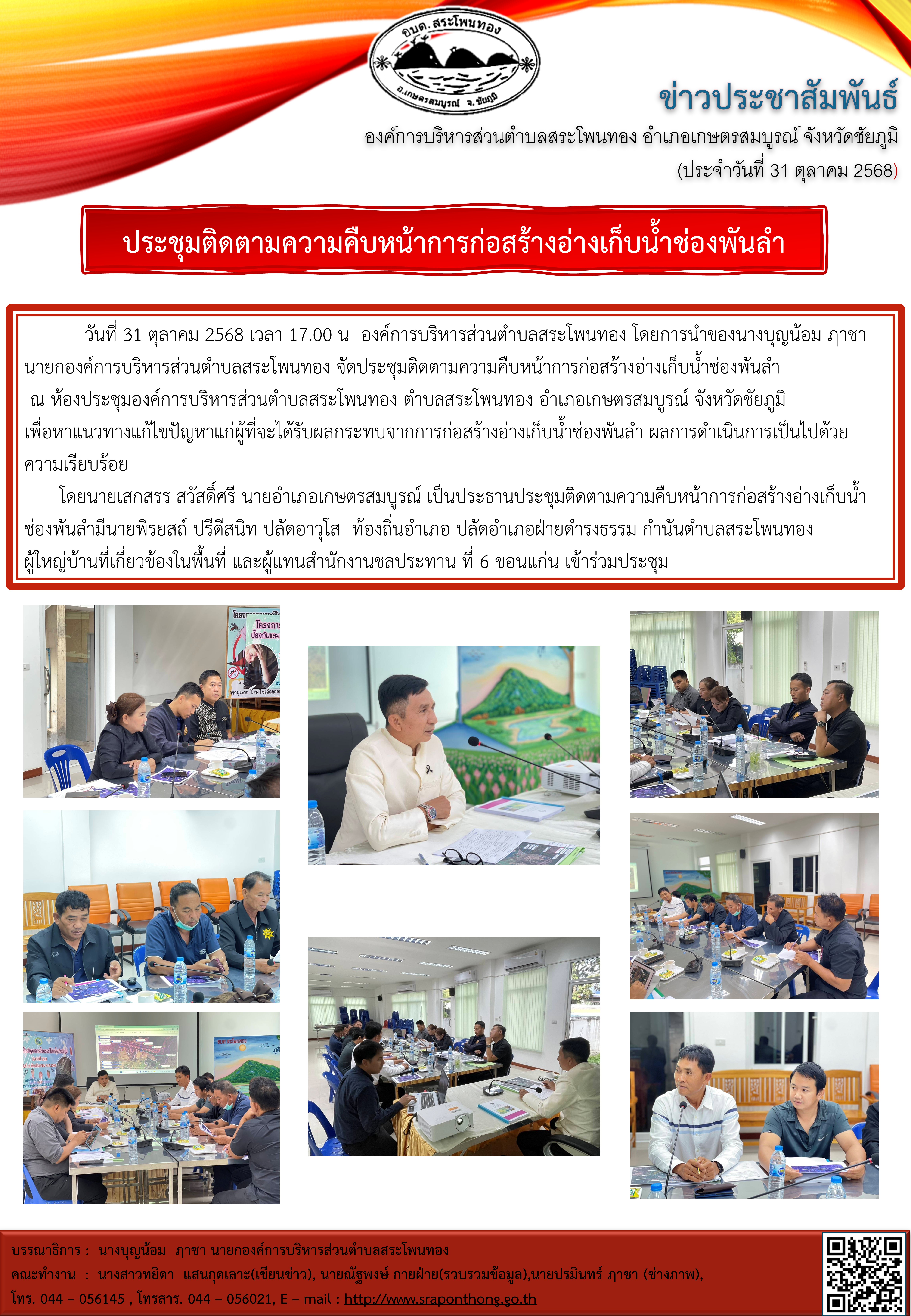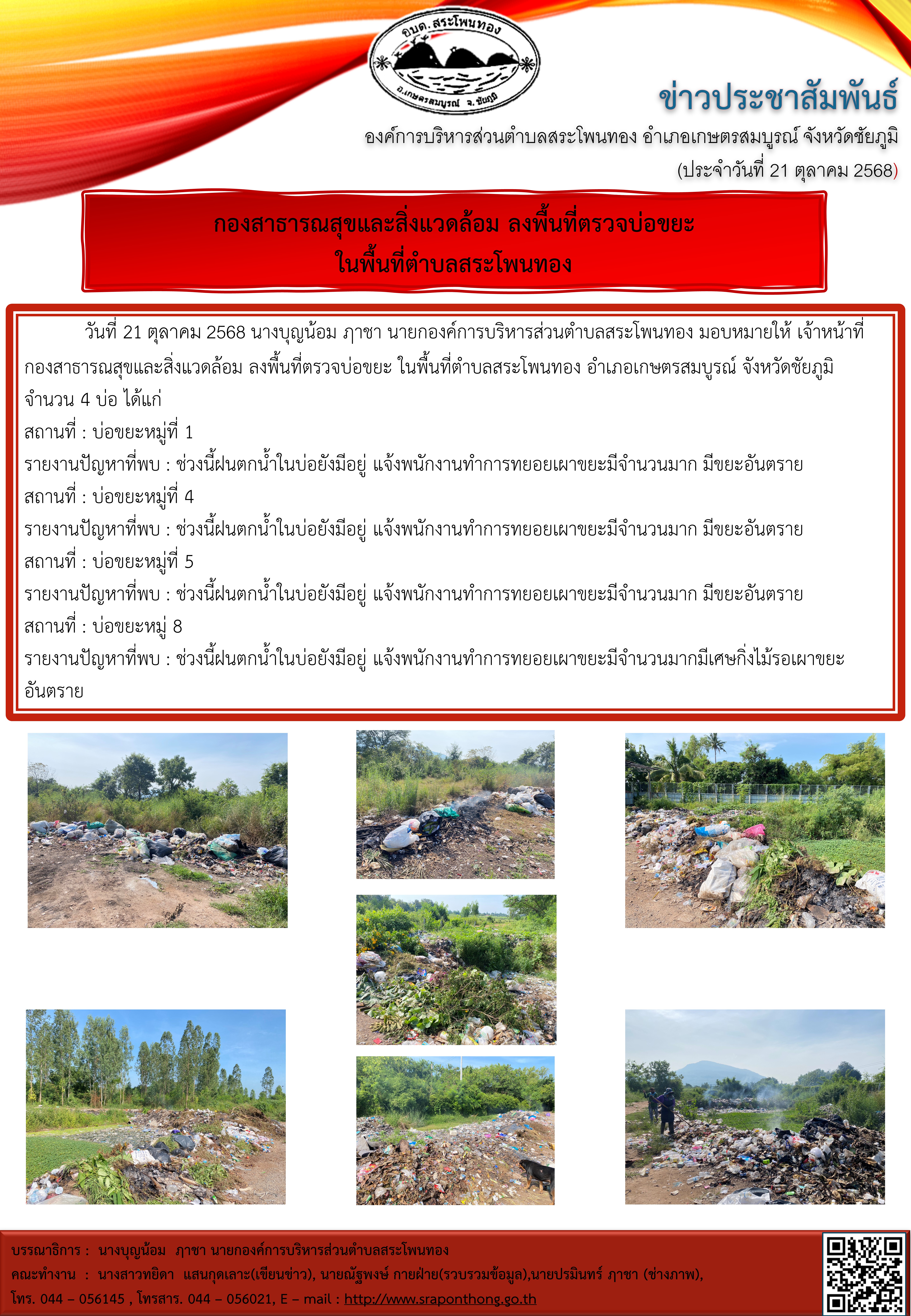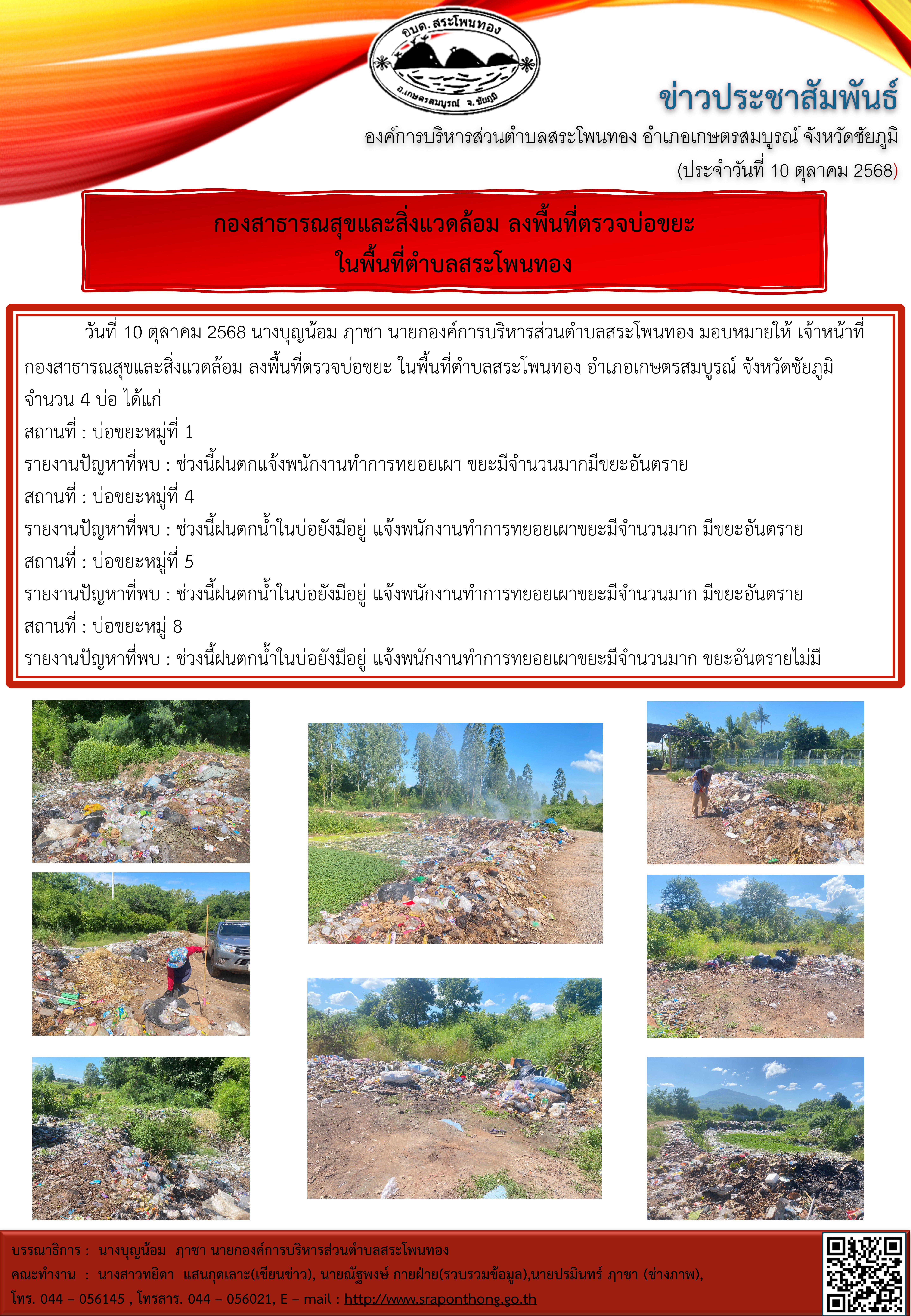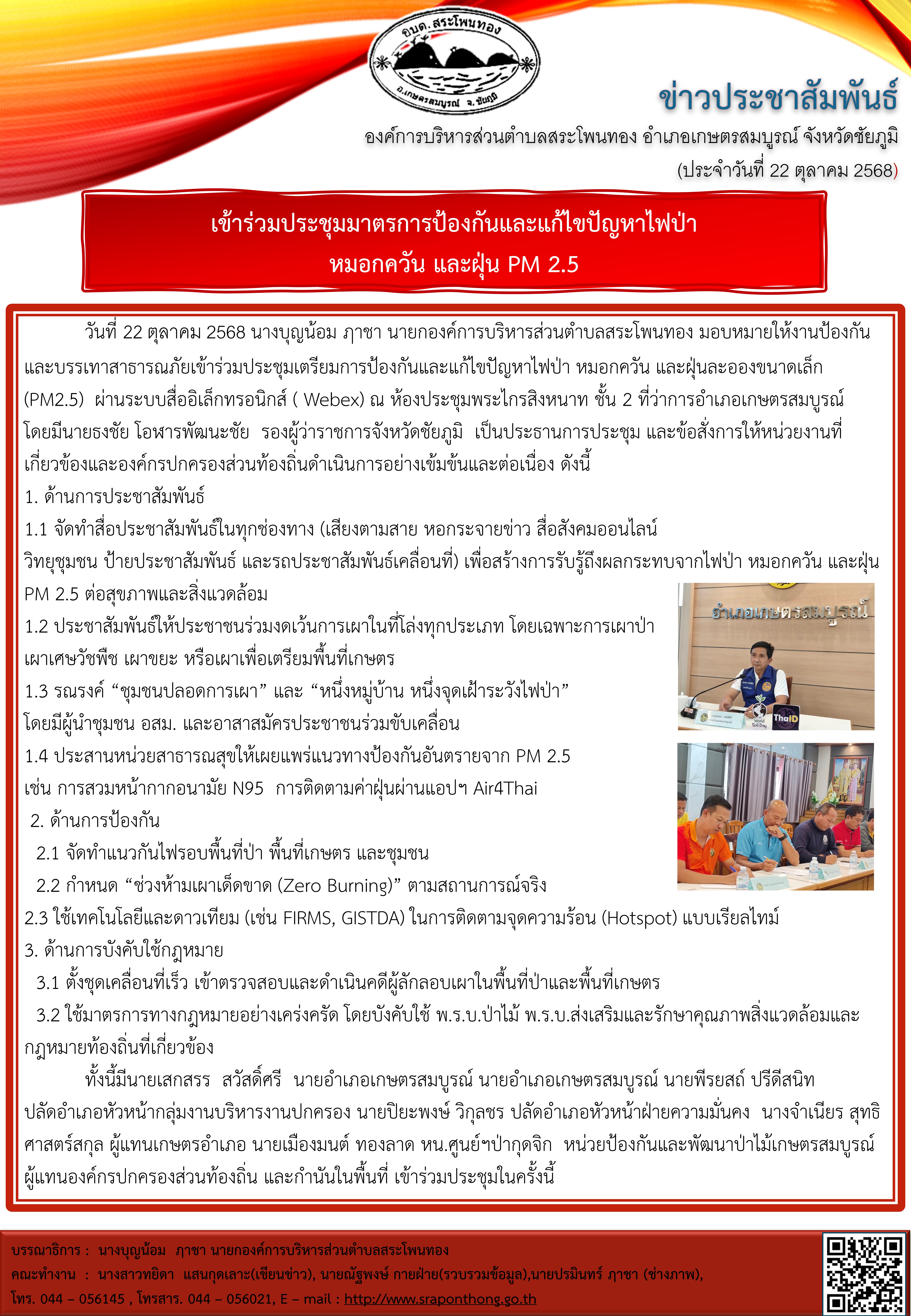 องค์การบริหารส่วนตำบลสระโพนทอง อำเภอเกษตรสมบูรณ์ จังหวัดชัยภูมิ: www.sraponthong.go.th