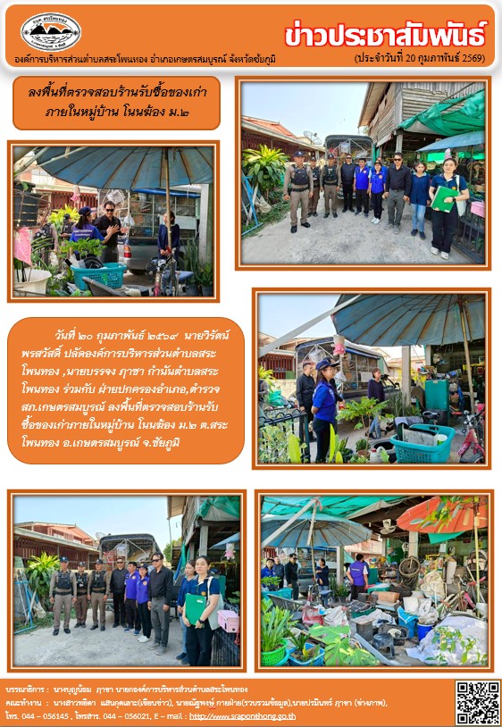 องค์การบริหารส่วนตำบลสระโพนทอง อำเภอเกษตรสมบูรณ์ จังหวัดชัยภูมิ: www.sraponthong.go.th
