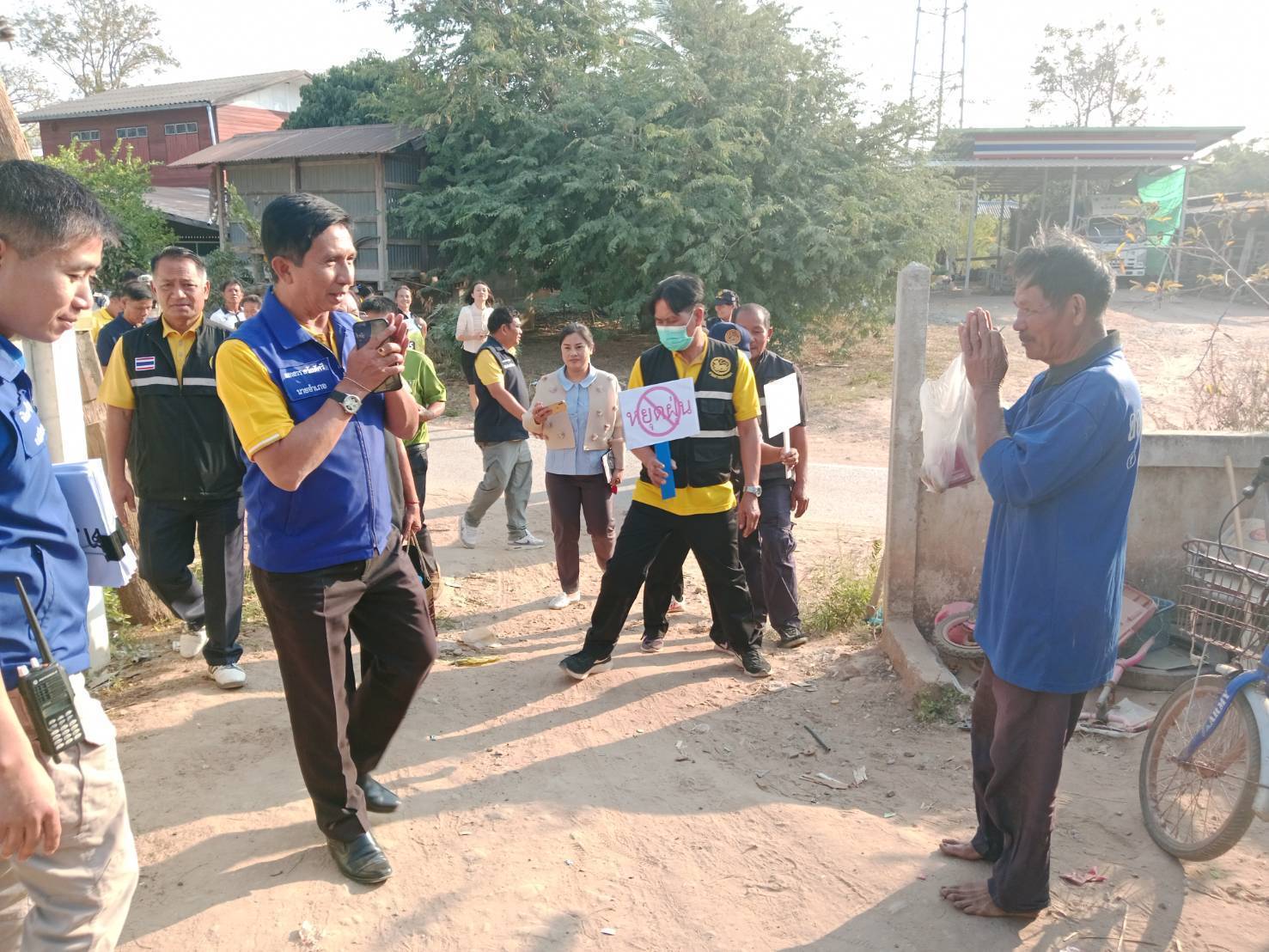 (check mark)ปล่อยแถวทีมเดินรณรงค์เคาะประตูบ้าน ประกอบด้วย กำนันผู้ ใหญ่บ้าน ผู้ช่วยฯลฯ สารวัตรฯ แพทย์ฯ เจ้าที่องค์การบริหารส่วนตำบลสระโพนทอง อสม. คณะกรรมการหมู่บ้าน เพื่อประชาสัมพันธ์ให้ความรู้เกี่ยวกับฝุ่น (PM2.5)" เพื่อสร้างความตระหนักถึงผลกระทบของฝุ่นละอองขนาดเล็ก (PM2.5) และส่งเสริมแนวทางป้องกันที่ประชาชนสามารถทำได้
